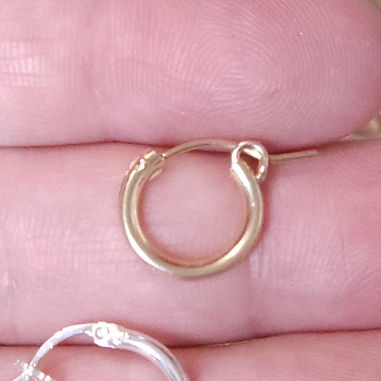 ~ Approx 2 mm thick - Gold hoops are about 13 mm wide and silver hoops are about 15 mm.