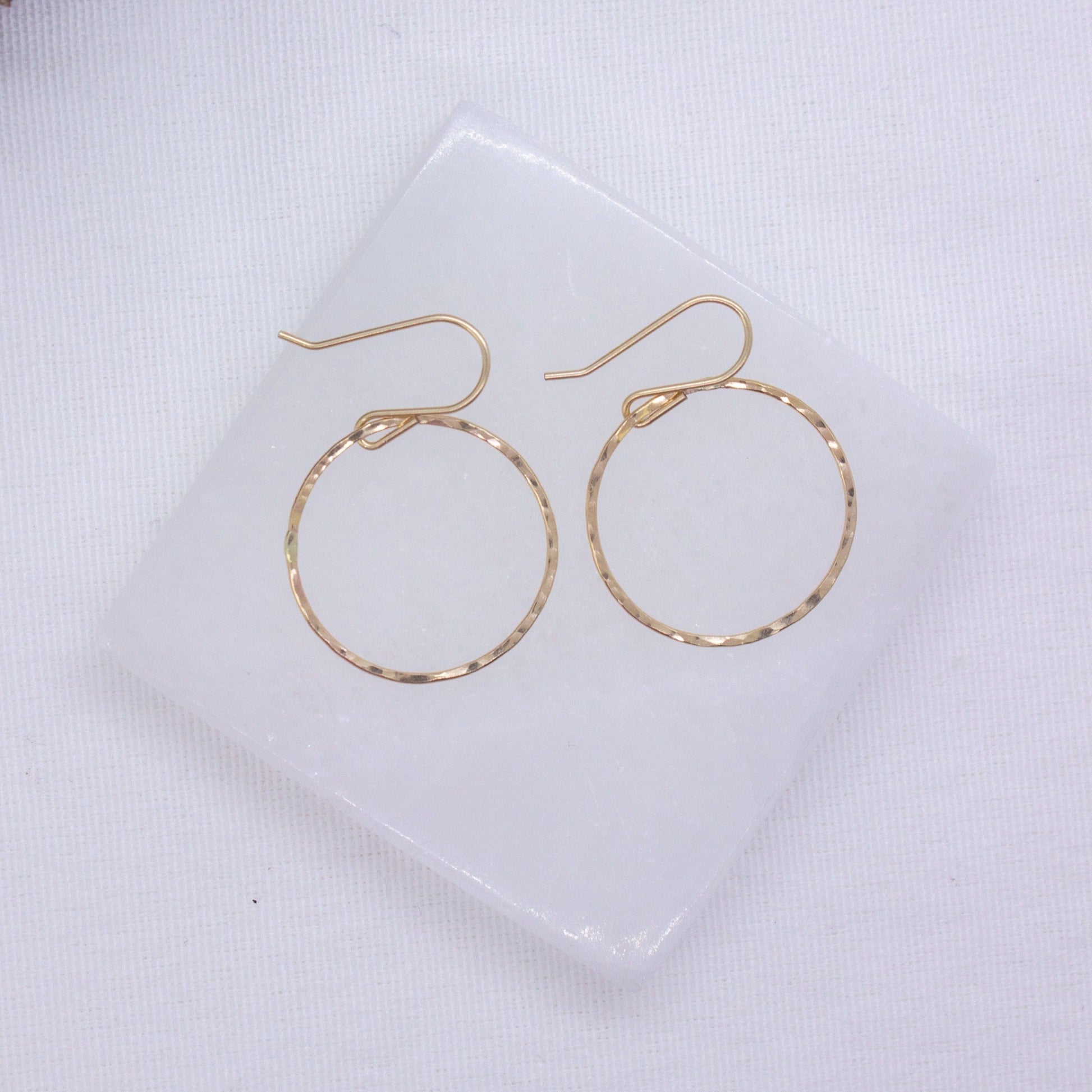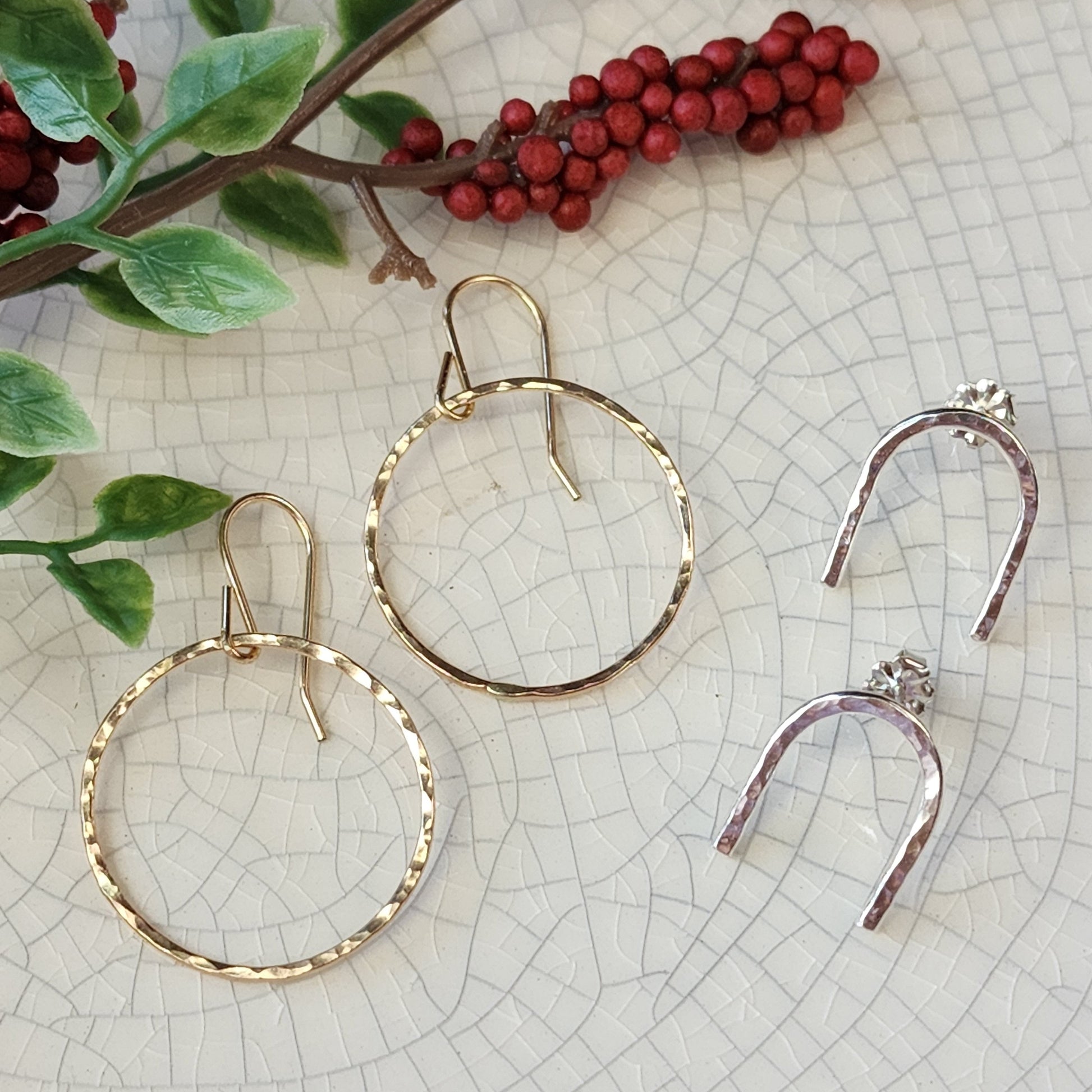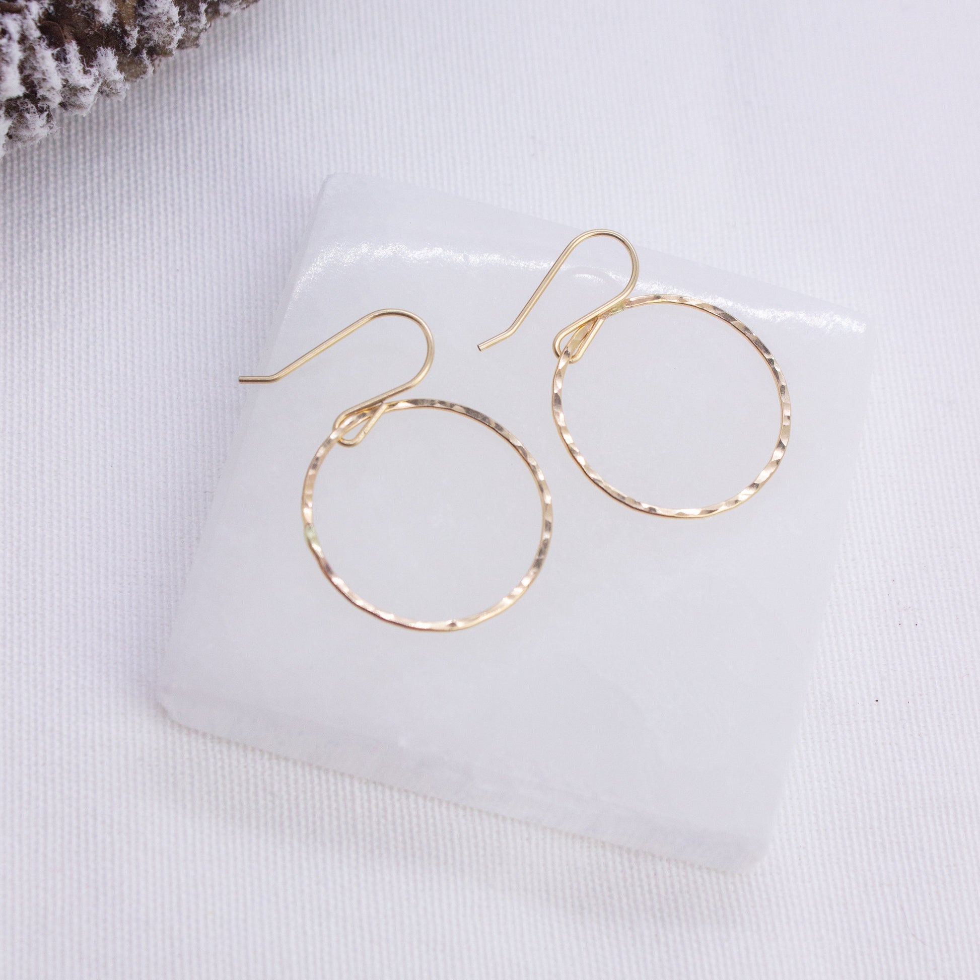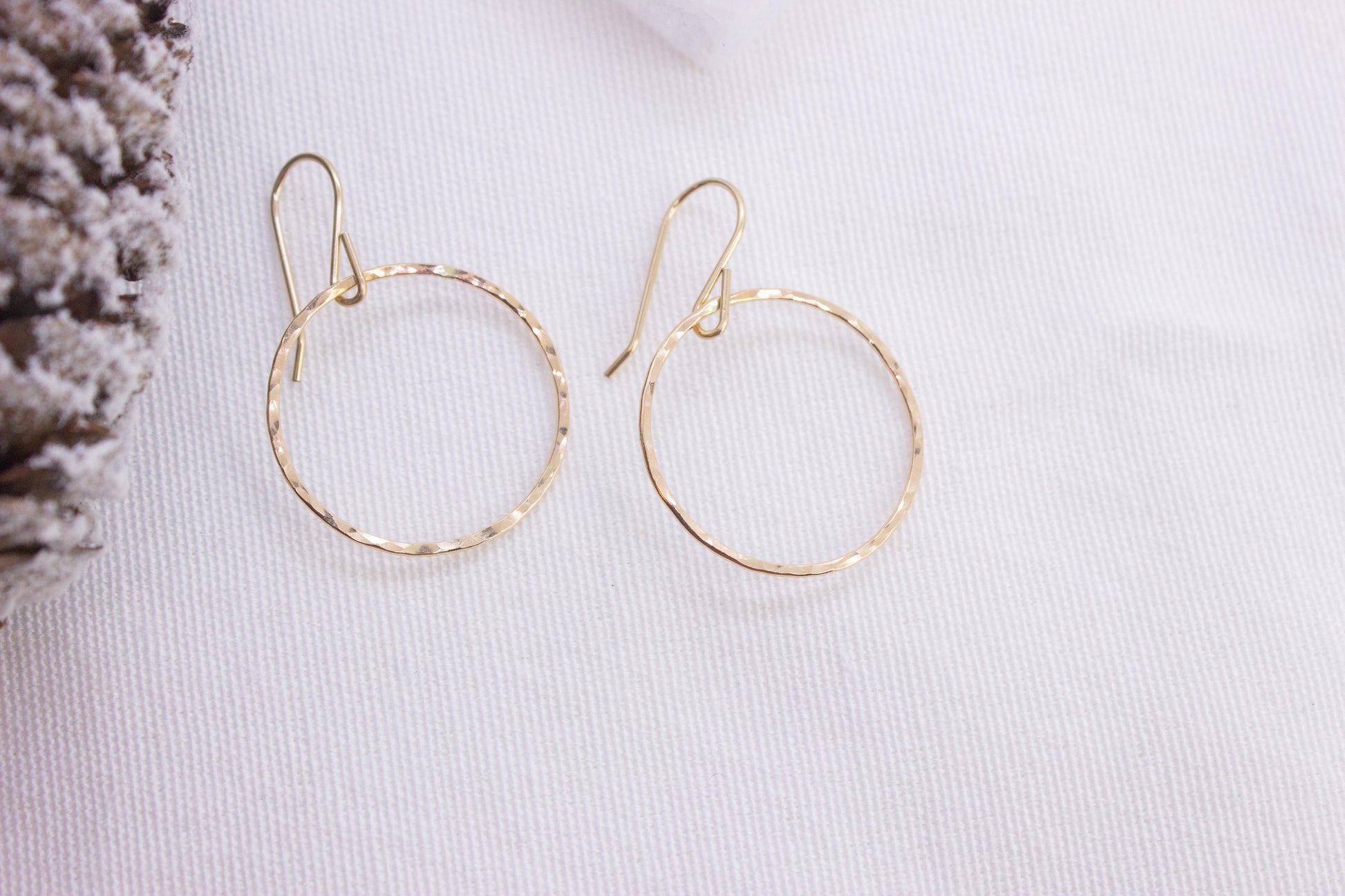 Simple hoop earring - a hammered circle hung on an ear wire. These earrings will be available in more sizes soon
